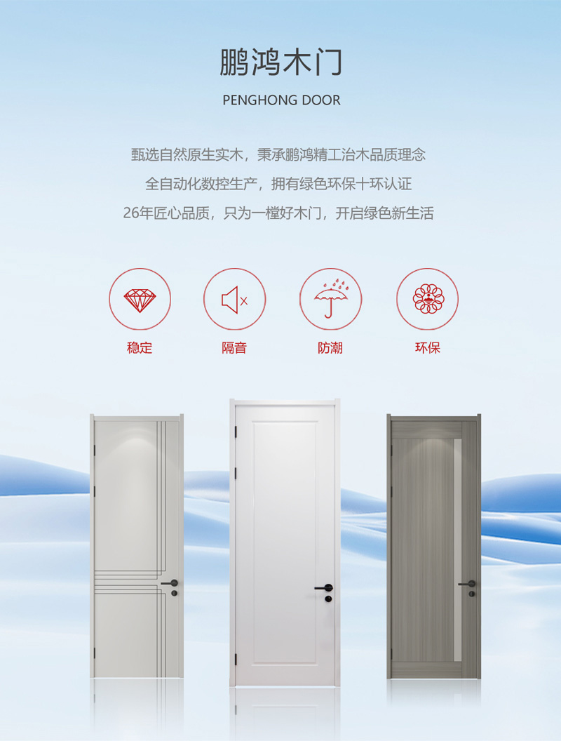 PENGHONG DOORs甄選自然原生實木,秉承鵬鴻精工治木品質理念,全自動化數(shù)控生產,擁有綠色環(huán)保十環(huán)認證。26年匠心品質,只為一樘好木門,開啟綠色新生活。