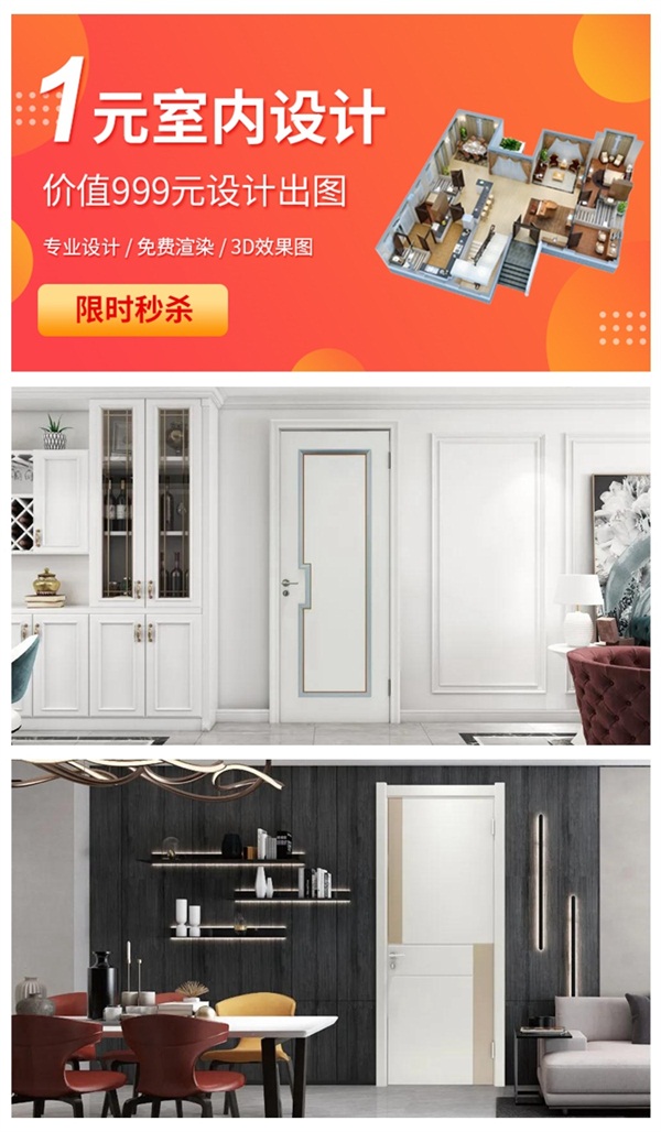 活動期間,通過鵬鴻省心惠小程序,1元搶購室內設計效果圖,專業設計、免費渲染、3D呈現。